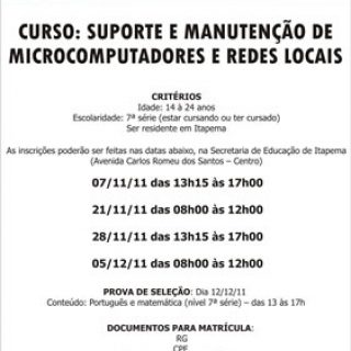 Inscrições acontecem nos dias 07,21 e 28/11 e 05/12.